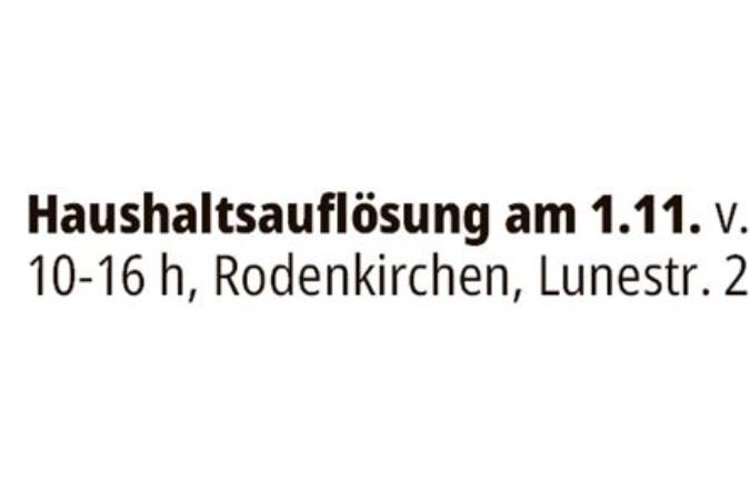 Haushaltsauflösung am 1.11. v. 10-16 h, Rodenkirchen, Lunestr. 2