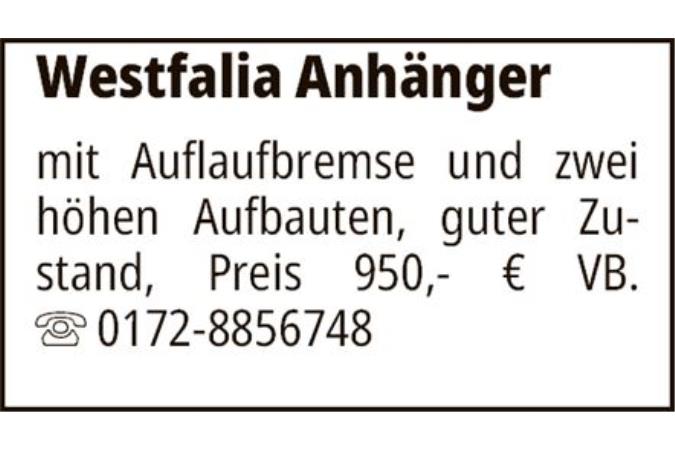 Westfalia Anhäger, Mit Auflaufbremse und zwei höhen Aufbauten. Guter Zustand . Preis 950 VB Must
