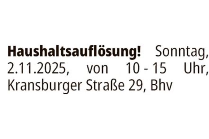 Haushaltsauflösung! Sonntag, 2.11.2025, von 10-15 Uhr, Kransburger Straße 29, Bhv
